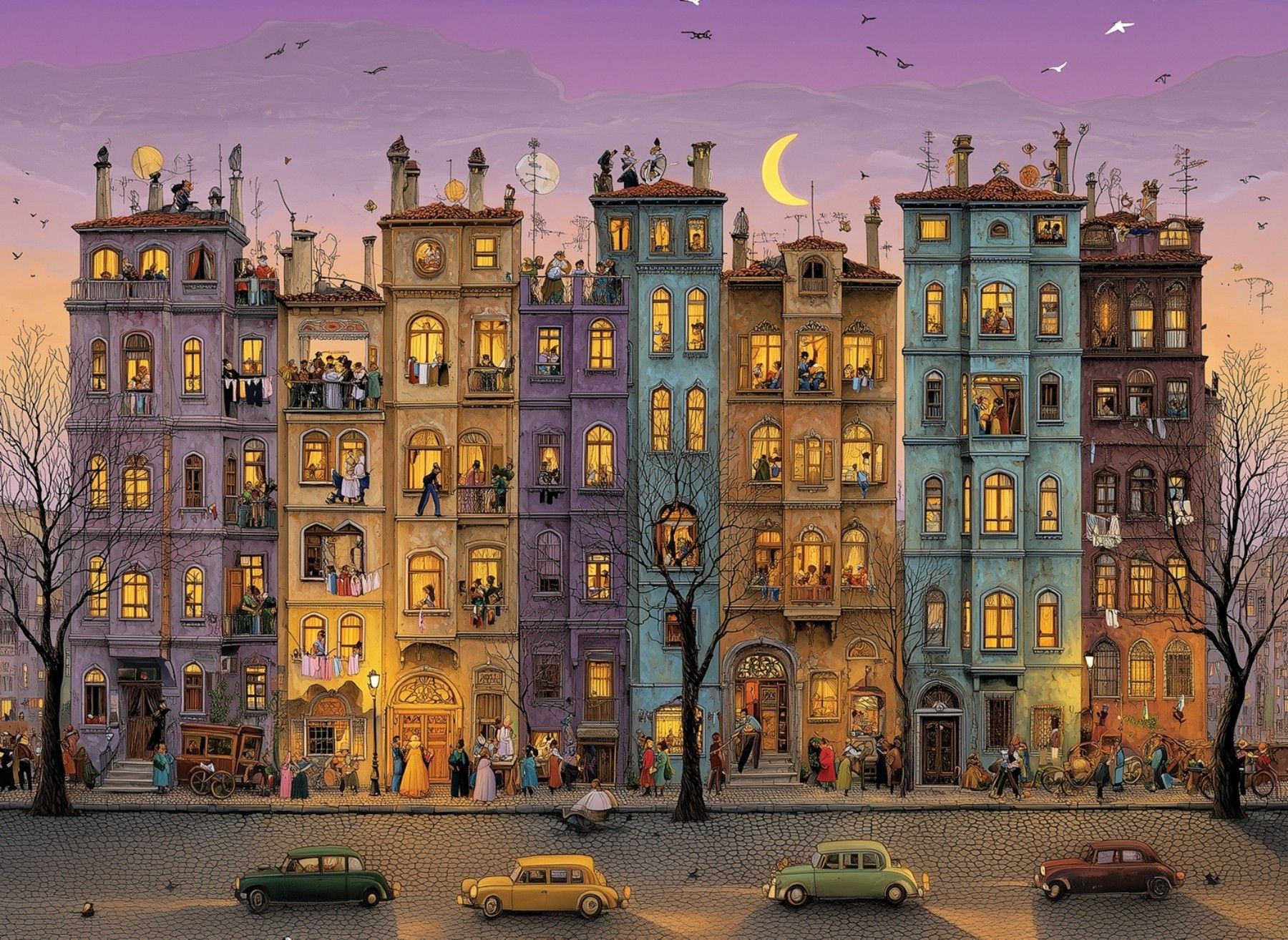 Canlı gece ışıkları ve şehir atmosferiyle dolu bir şehir sahnesi. Parçaları birleştirirken enerjiyi ve eğlenceyi hisset.