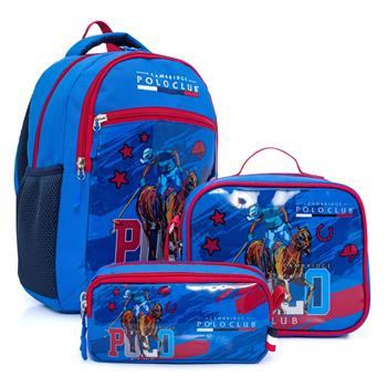 Cambridge Polo Club Riders Temalı 3 lü Erkek İlkokul Çanta Seti - Mavi - PLCAN2118