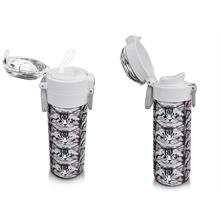 Coral High 500 ml Gri Kedi Desenli - Kız Çocuk Paslanmaz Çelik Okul Termosu/Suluk/Matara