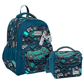 Coral High İkili Okul Çanta Seti - Nefti Yeşil Oyun Konsolu - Erkek Çocuk