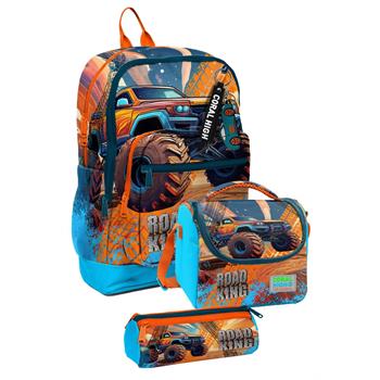 Coral High Mavi Turuncu Arazi Aracı, Erkek Çocuk Okul Çanta Seti