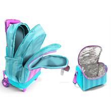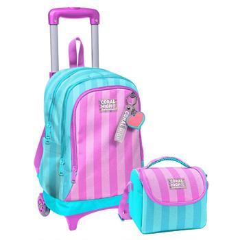 Coral High Işıklı Tekerlekli Çekçek İlkokul Çantası ve Beslenme Çantası Seti - Turkuaz Pembe Çizgili