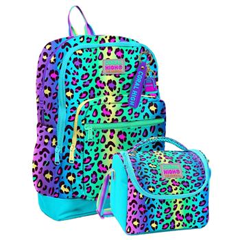 Coral High Yeşil Mor Leopar, Kız Çocuk Okul Sırt Çantası ve Beslenme Seti