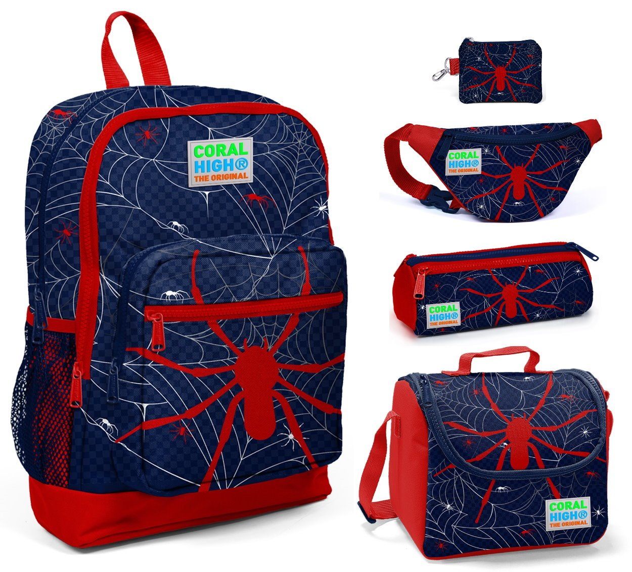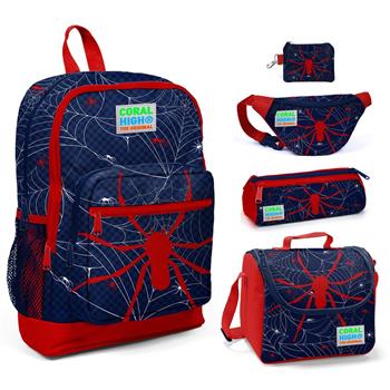 Coral High Mavi-Kırmızı Örümcek Desenli 5 li İlkokul Çanta Seti