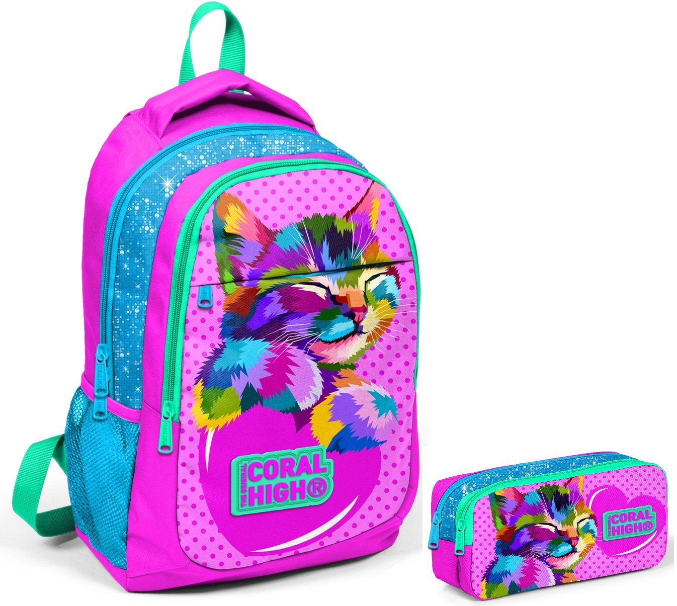 Coral High Kids Üç Bölmeli İlkokul Sırt Çantası ve Kalem Çantası Seti