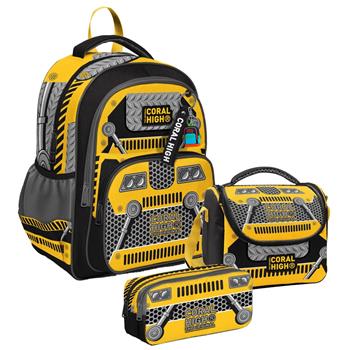 Coral High Üçlü Okul Çanta Seti - Siyah Sarı Robot - Erkek Çocuk