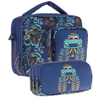 Kaukko Kids Isı Yalıtımlı Beslenme Çantası ve Üç Bölmeli Kalemlik Seti - Lacivert Turkuaz - Kamyon