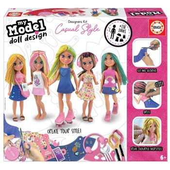 İçindekiler: 1 adet monte edilebilir manken, 1 adet önceden baskılı kumaş paneli, moda aksesuarları, giysi klipsleri, iplik, kumaş işleme aleti, talimatlar ve video talimatları.