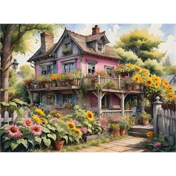 Nova Puzzle 1000 Parça Yetişkin Puzzle - NOVA41172 - Ayçiçekli Pembe Ahşap Ev